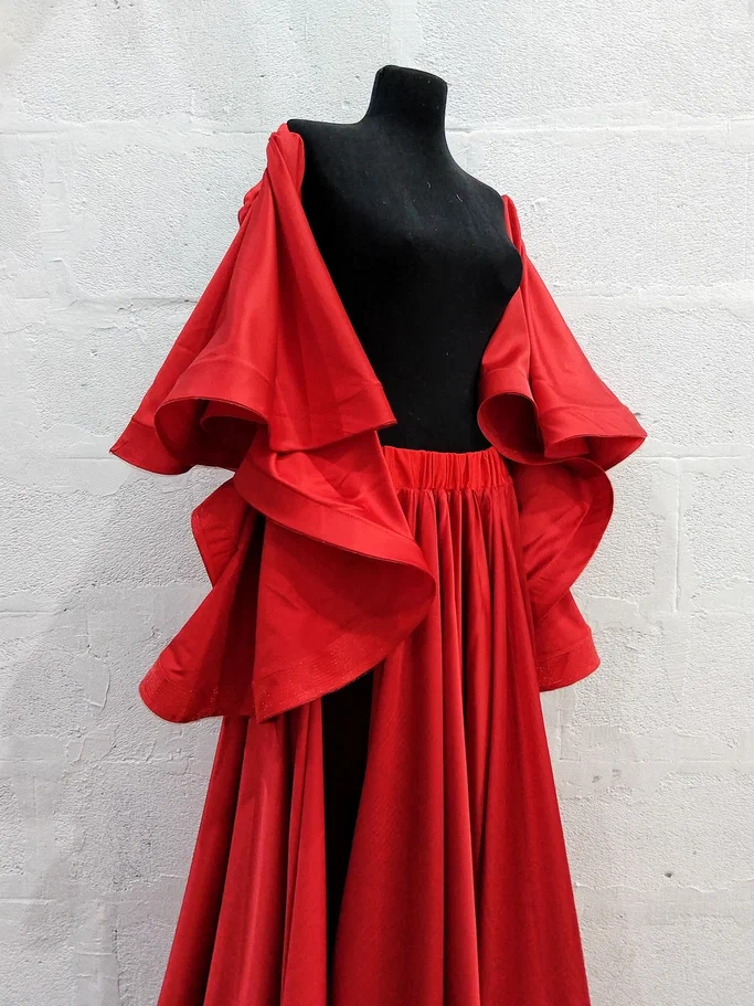 Этот комплект создан для эффектных выступлений и грациозных движений. Юбка 1.5 солнца дарит невероятную динамику в танце, а воздушные рукава придают образу дополнительную выразительность.